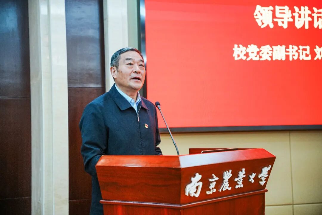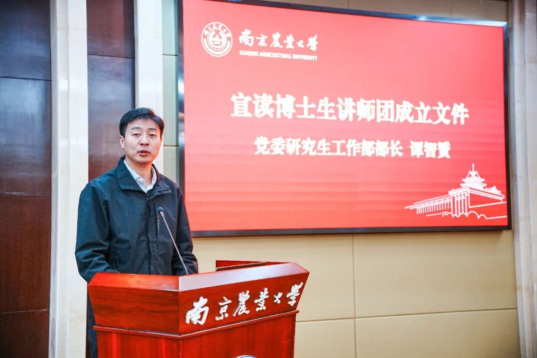 刘营军在讲话中指出,成立博士生讲师团,是学校立足新时代新征程,加强和改进我校思想政治工作的创新实践,更是彰显南农人使命担当的生动体现。他对全体讲师团成员提出三点希望:一要筑牢根基,做信仰坚定的传播者。讲师团成员要持续加强理论学习,要真学、真懂、真信、真用,准确传递党的理论、路线、方针、政策,用真理的力量感召人,用坚定的信仰引领人。二要教学相长,做知行合一的示范者。讲师团成员要注重理论联系实际,紧密结合自己的科研方向和国家战略需求、社会现实问题,讲述农业科技的奥秘、科研工作的甘苦与服务国家的担当,引领新时代研究生的理想与追求。三要贴近同学,做朋辈引领的贴心人。讲师团成员要用好朋辈优势,善于运用青年话语、身边事例、网络元素,增强宣讲的吸引力、亲和力和实效性,凝聚起积极向上、奋发有为的校园正能量。