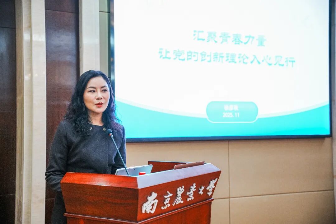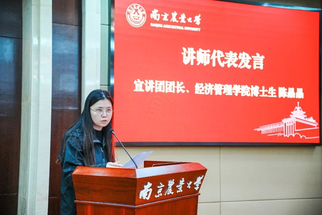 讲师团团长陈晶晶代表全体讲师团成员发言,表达了深耕理论宣讲、讲好新时代中国故事与南农故事,助力乡村振兴的信心与决心。