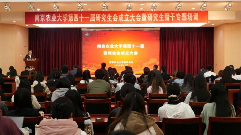 11月15日上午,第四十一届研究生会成立大会在卫岗校区金陵研究院三楼报告厅顺利召开。校党委副书记刘营军,校党委研究生工作部部长谭智贇,校团委副书记(主持工作)文习成,校党委研究生工作部副部长林江辉,校党委研究生工作部研究生教管办主任华欣,各研究生分会指导教师,第四十一届研究生会全体成员和各研究生分会主席团成员出席活动。