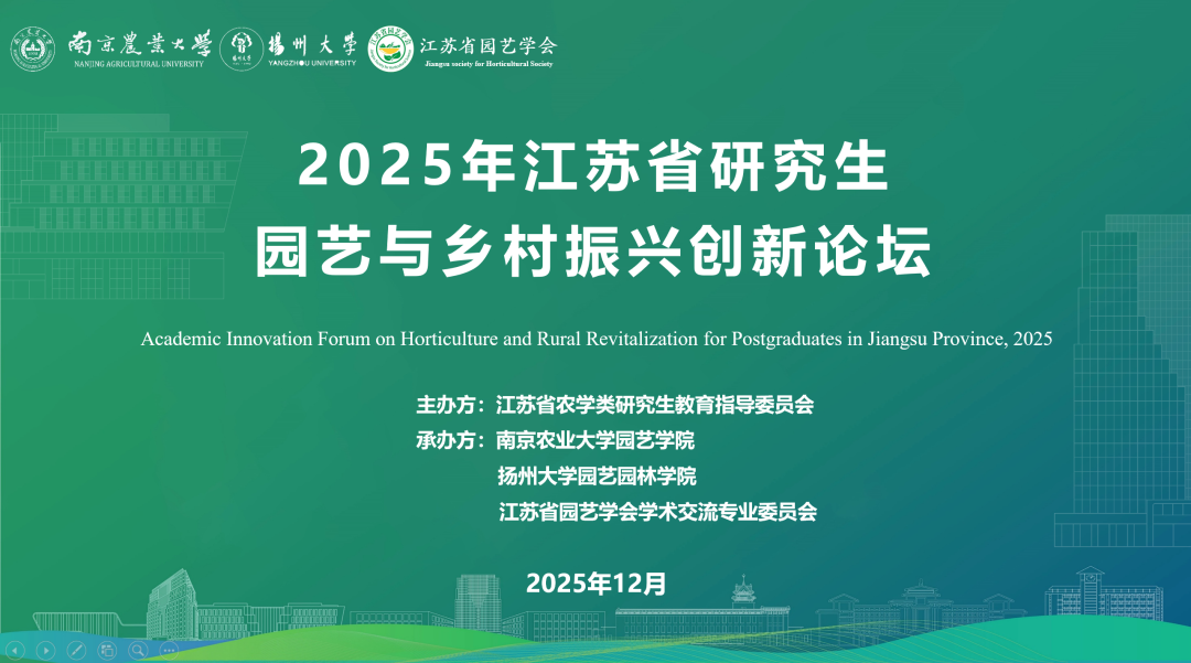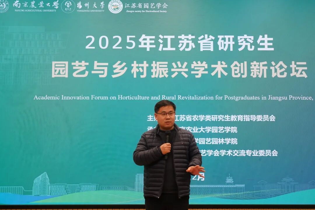 12月8日,2025年江苏省研究生园艺与乡村振兴学术创新论坛于我校滨江校区园艺学院楼142报告厅成功举办,论坛围绕当前园艺科研产业的发展前沿,紧扣国家乡村振兴战略,秉承“创新意识,启迪思维”的办会宗旨,为江苏省、长三角地区高校园艺学科研究生搭建一个学术交流平台,拓宽研究视野、提升创新能力,促进优秀科研成果的交流与落地,共同践行“园艺让生活更美好”这一理念。本次论坛由江苏省农学类研究生教育指导委员会主办,南京农业大学园艺学院、扬州大学园艺园林学院、江苏省园艺学会承办。