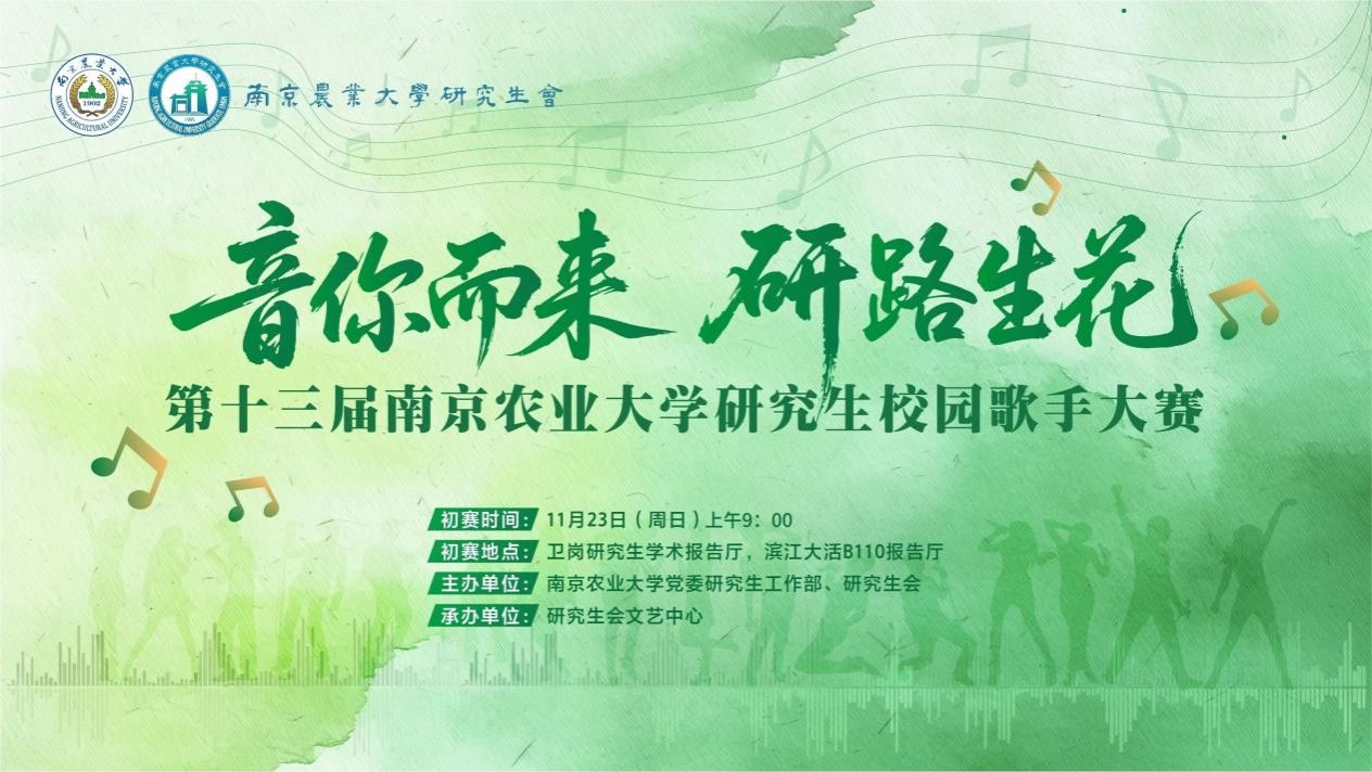 我们期待这样的你,为热爱尽兴而歌吧!当话筒递到手中,当聚光灯为你亮起,这一刻,你是舞台主角。研究生校园歌手大赛,我们期待你用声音证明:每一个青春的旋律,终将汇入新时代的壮丽交响!别再等待下一个“下次”,最好的时机,永远是现在我们不问来处,只盼知音。来吧,带着你的故事与热爱,把心境写成歌,让整个南农——为你倾听。