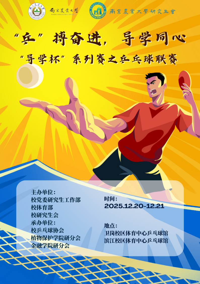 寒风凛冽?挡不住挥拍的炽热!冬意渐浓?燃得起赛场的激情!“乒”搏奋进,导学同心,“导学杯”系列赛之乒乓球联赛重磅来袭!球台已备好,热血正沸腾——师生同场竞技,乒乓共舞寒冬,这场巅峰对决,就等你登场!