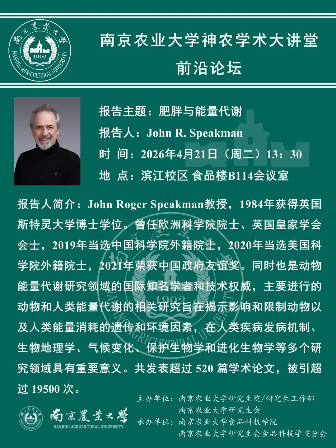 面对以上问题,本次活动特邀中国科学院外籍院士、英国皇家学会会士John R. Speakman教授,围绕“肥胖与能量代谢”分享最新研究进展。Speakman教授是动物能量代谢研究领域的国际权威,现任中国科学院深圳先进技术研究院研究员、深圳人类双标水实验室首席科学家,长期从事能量代谢测量技术、肥胖进化机制及精准营养研究,发表学术论文超过520篇,被引逾19500次。