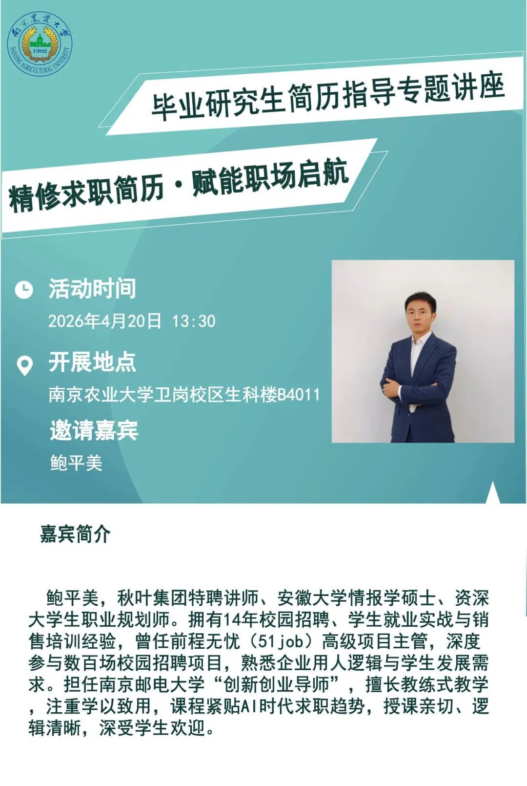 当前高校毕业生就业竞争日趋激烈,简历是求职的第一敲门砖,直接决定能否获得面试机会。不少毕业研究生存在内容空洞、经历不量化、岗位匹配度不足、格式不规范等问题,对AI时代简历优化技巧与HR筛选逻辑也缺乏了解。为帮助我校毕业硕博生打磨高质量简历、提升求职竞争力,特举办本次简历指导专题讲座。