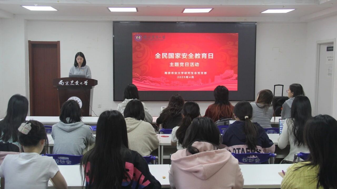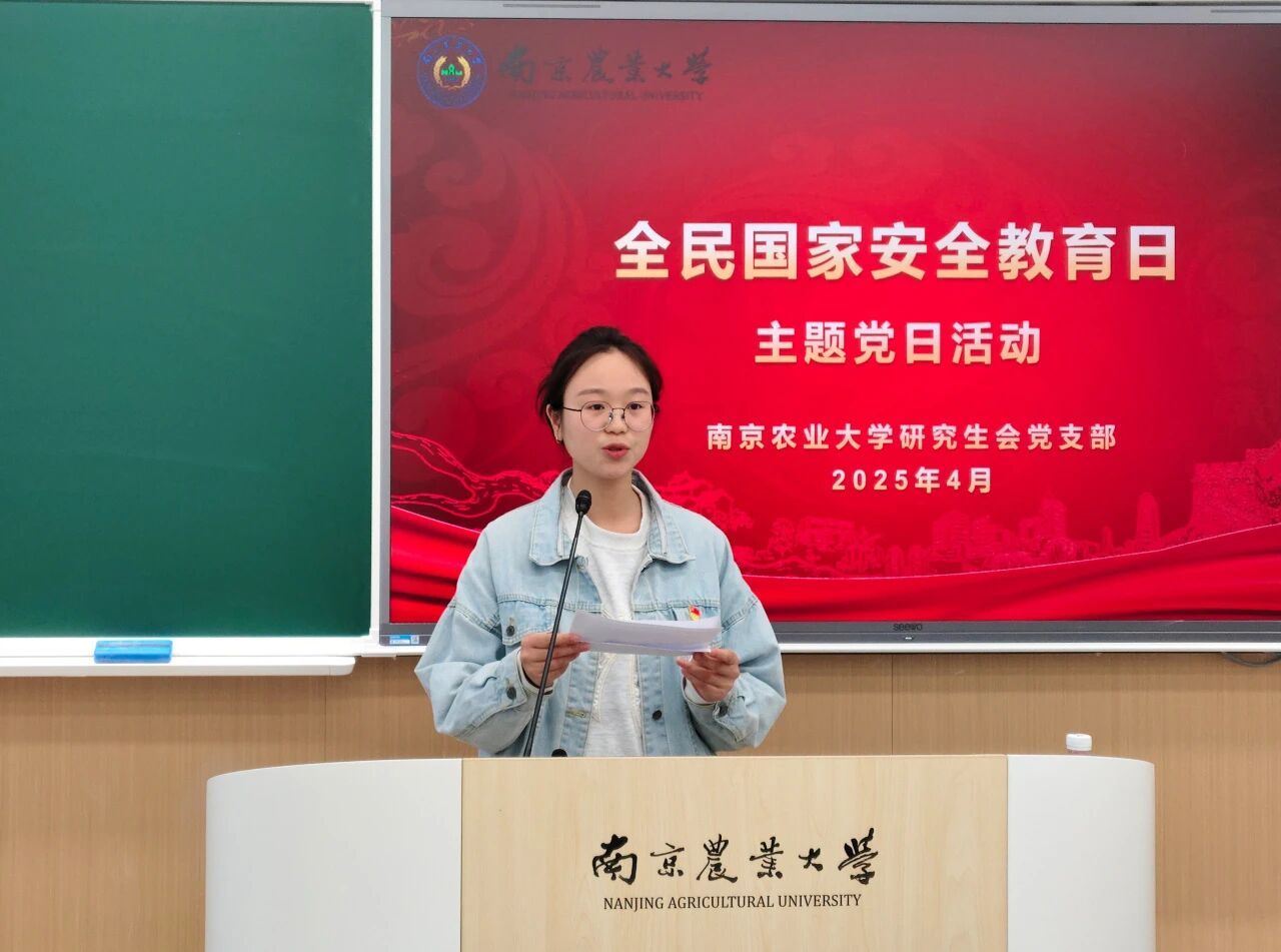 2025年4月15日是第十个全民国家安全教育日。为深入贯彻落实习近平总书记关于全面加强国家安全教育的重要指示精神,切实增强师生的国家安全意识,4月15日,南京农业大学研究生会党支部在卫岗校区研究生报告厅和滨江校区公共教学楼B113举办了国家安全教育日主题党日活动。研究生会党支部全体成员参与此次活动。