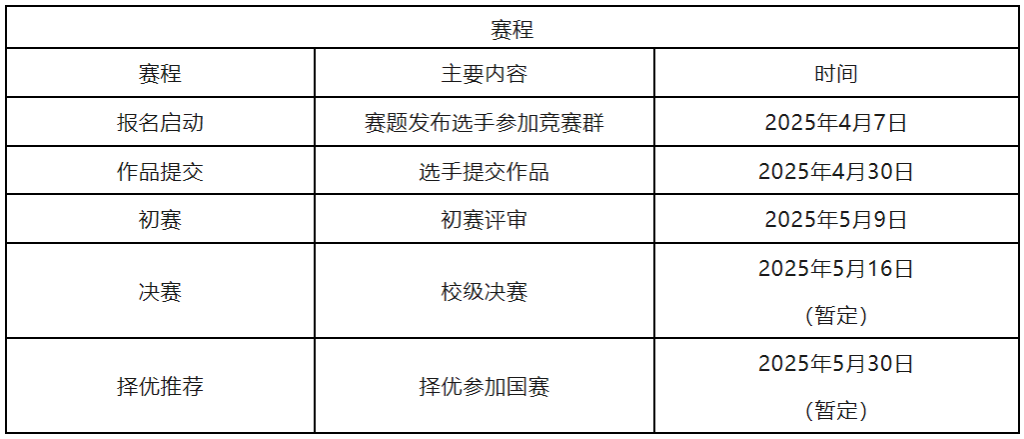 大赛分为初赛和决赛两个阶段。在每个阶段,参赛队伍须按照要求按时合规地提交参赛作品。提交的作品材料中不得体现学院或导师等影响比赛公平的信息。团队信息(名称、成员、排序以及指导教师等)以初赛报名信息为准。