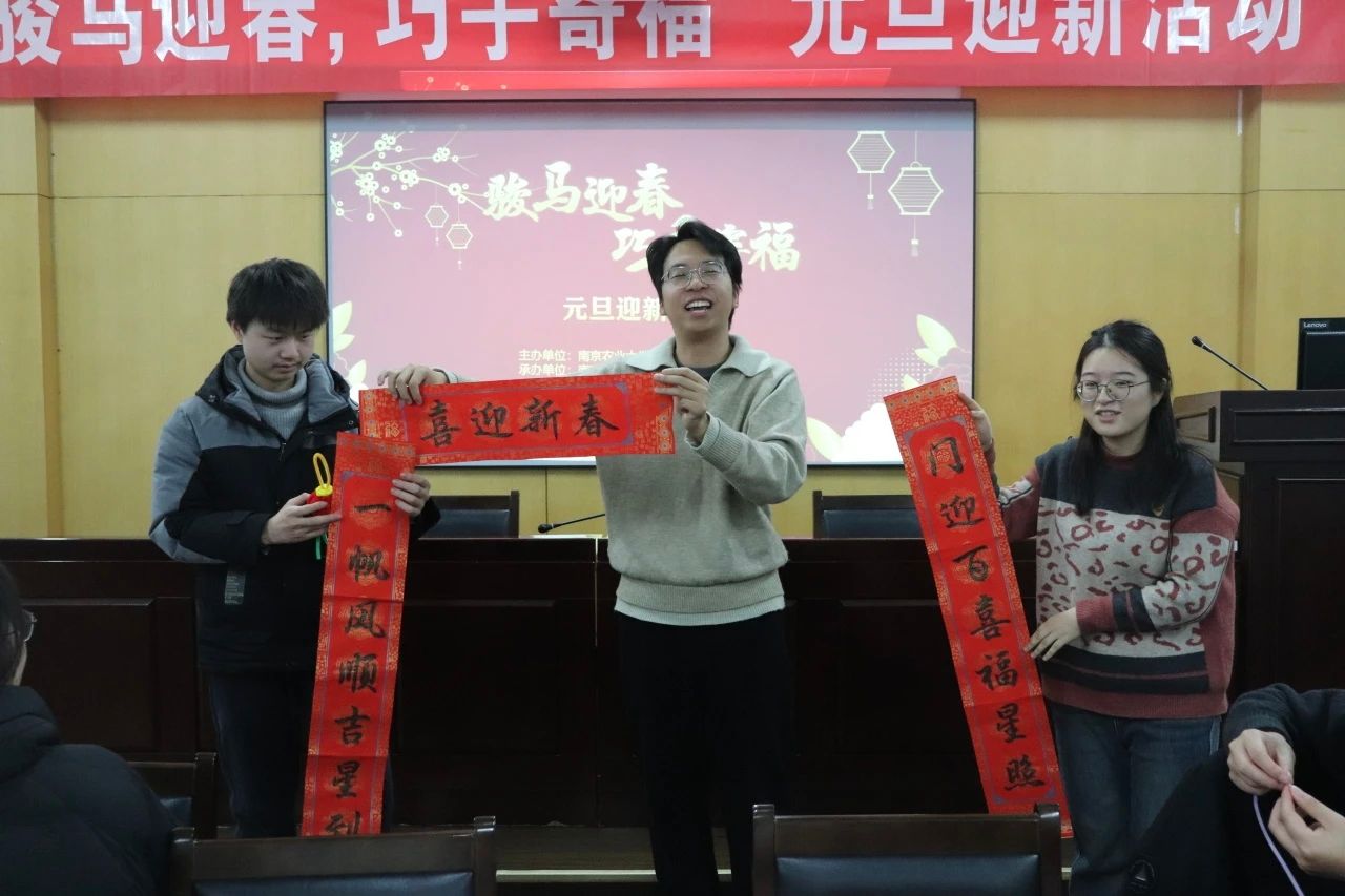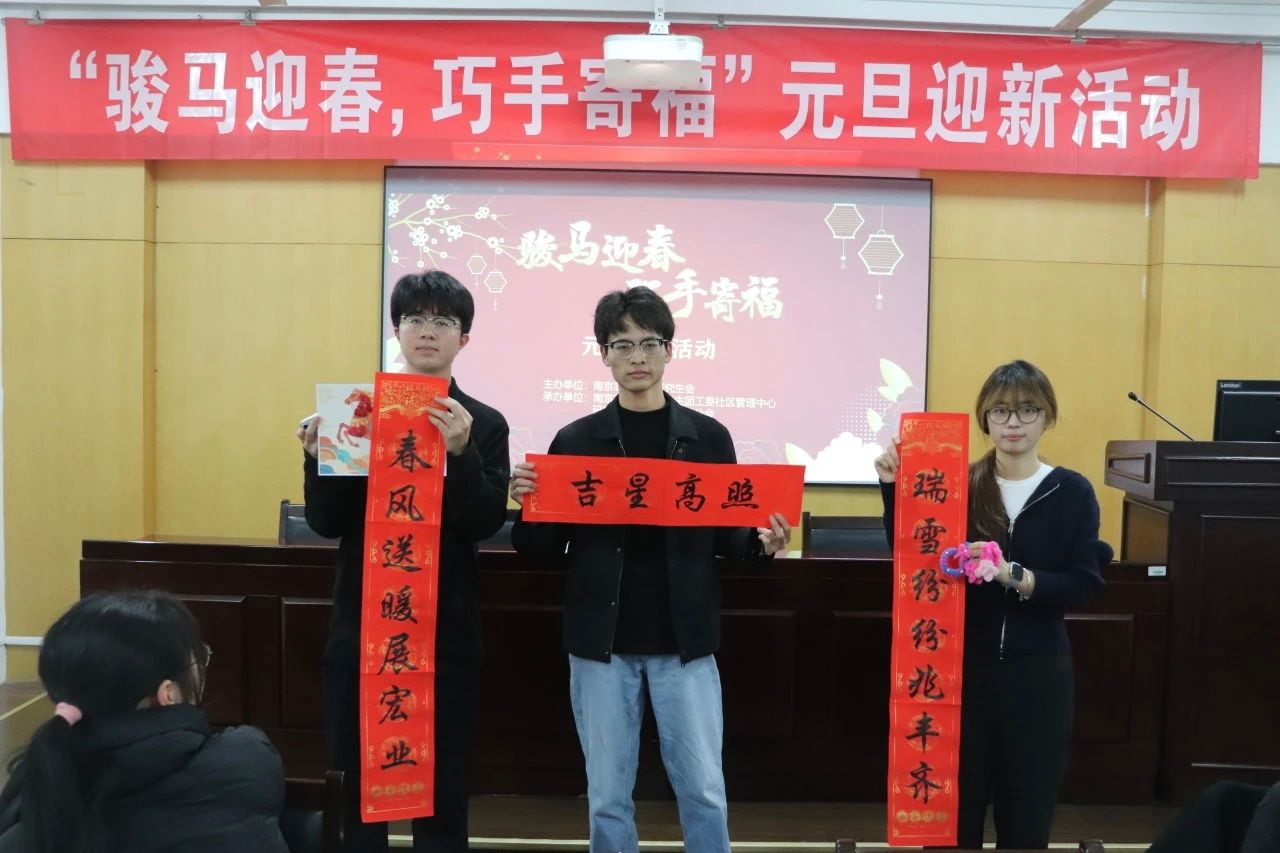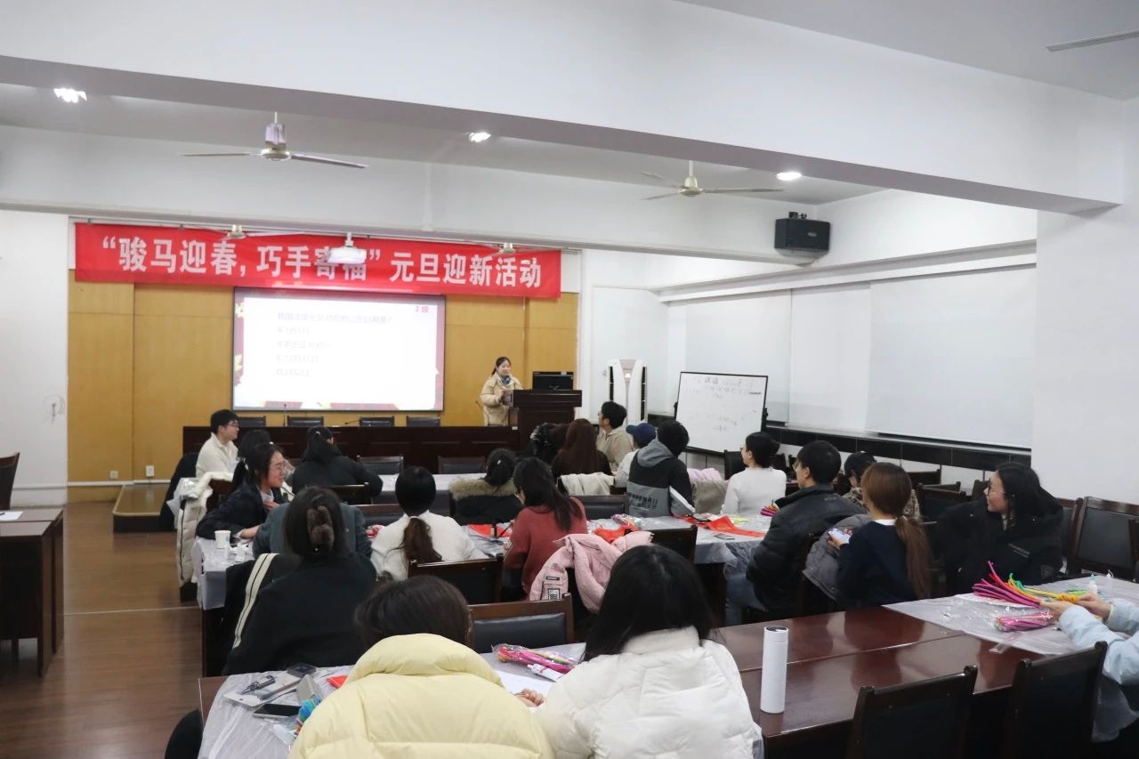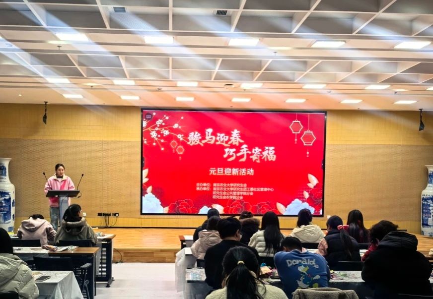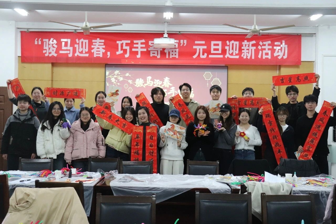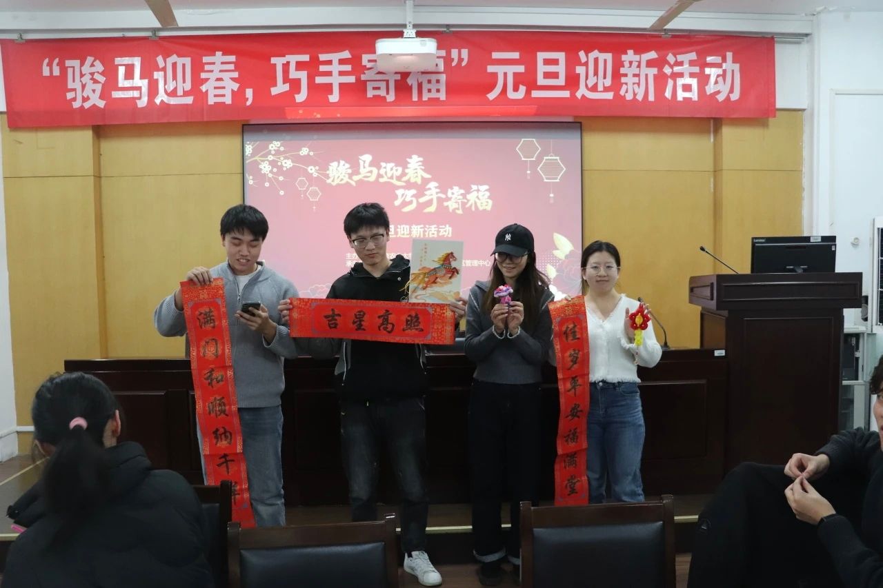 岁聿云暮,新元肇启。为丰富研究生校园文化生活,传承中华优秀传统文化,12月30日晚,“骏马迎春,巧手寄福” 元旦迎新活动在滨江校区23号楼128-130报告厅和卫岗校区逸夫楼7021教室顺利举行。活动由党委研究生工作部、校研究生会主办,研究生团工委社区管理中心、研究生会公共管理学院分会及农学院分会联合承办,吸引了13支队伍,50余名研究生参与。