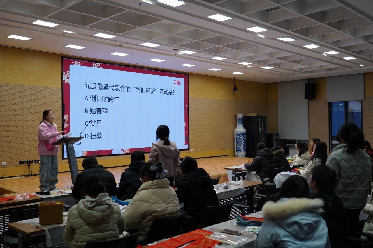 本次活动紧扣“传承文化、增进交流、放松身心”目标,设置四大特色环节,将元旦文化、生肖元素与传统手工艺深度融合。在“知识迎元旦,才情‘马’上现”环节,涵盖元旦起源、习俗、诗词、生肖文化的三级难度题目,通过选择、填空、判断等题型考验选手积累。随后的“马”年飞花令中,各组选手10秒内轮番应答含“马”字成语或诗句,精彩接龙点燃现场气氛。