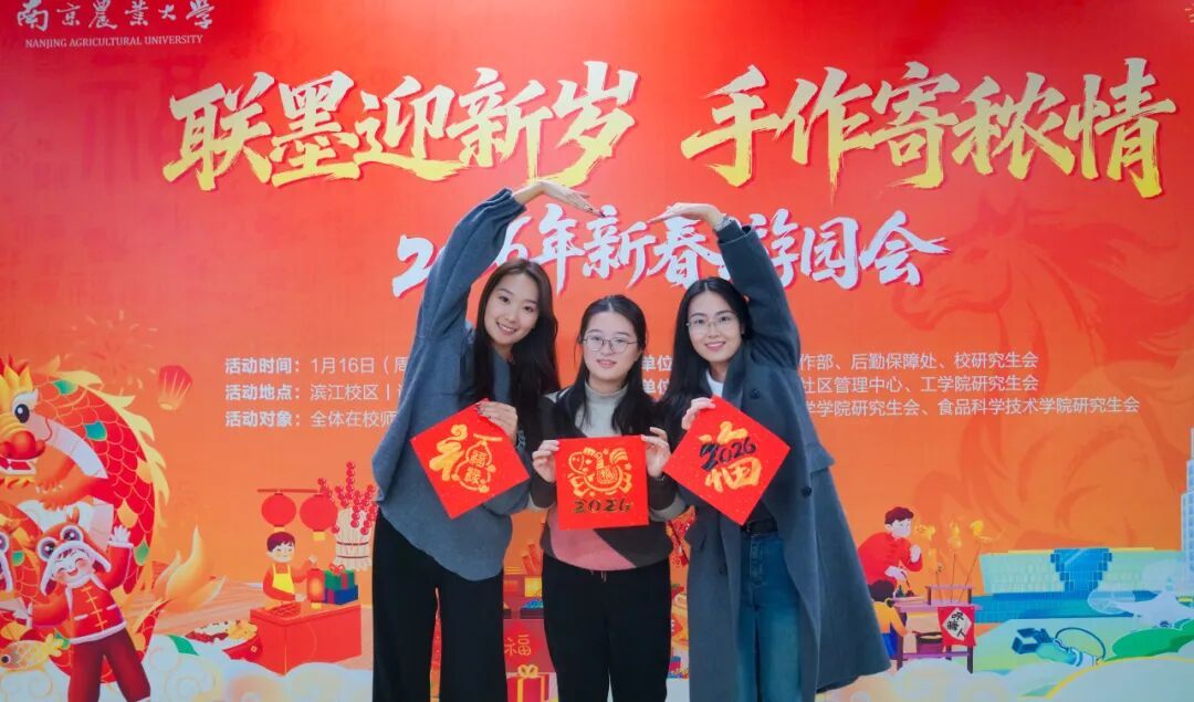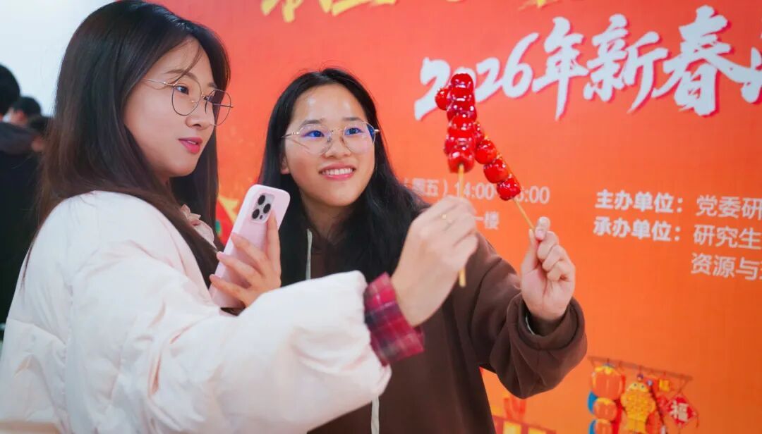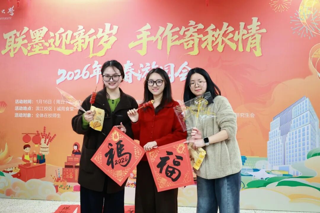 腊意渐浓,岁序更新。1月16日下午,2026年“联墨迎新岁,手作寄秾情”新春游园会于滨江校区诚苑食堂一楼温馨启幕。活动由党委研究生工作部、后勤保障处、校研究生会主办,研究生团工委社区管理中心、资源与环境科学学院、工学院、食品科技学院研究生会联合承办,吸引了八百余名师生热情参与。