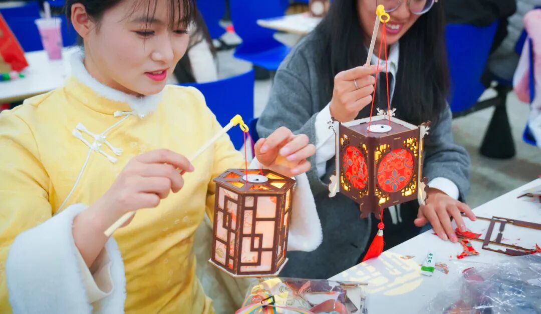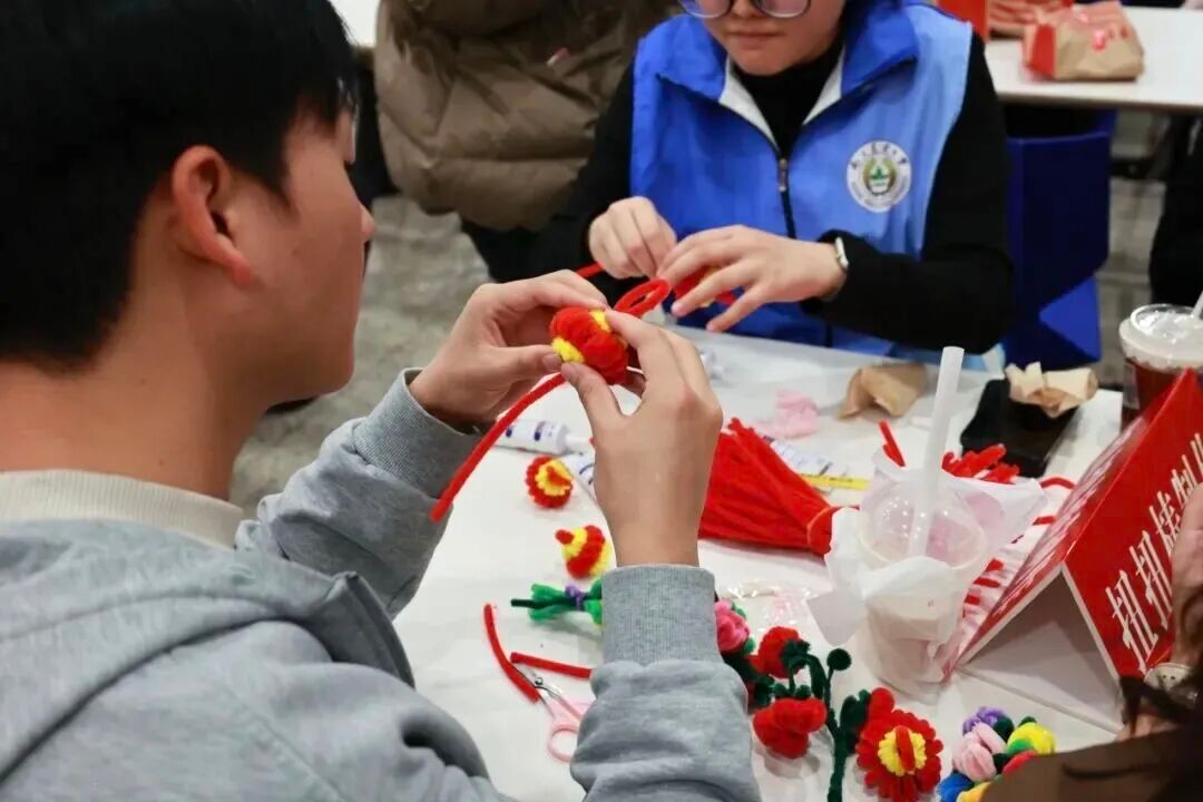 手作区内,多项入选非物质文化遗产的传统工艺在此生动复现。剪纸区域,巧手翻飞,寻常红纸顷刻变为寓意“福寿双全”“连年有余”的精致窗花;花灯制作区,师生协力扎竹骨、糊宣纸、绘彩图,一盏盏充满古韵的灯笼渐次亮起,映照出团圆温暖的年节底色。特别设置的中草药拼贴画,以枸杞、红枣、菊花等为材,拼出吉祥图案,融中医养生哲学于艺术创作之中。这些指尖技艺,不仅是美的创造,更是生动的文化传承。