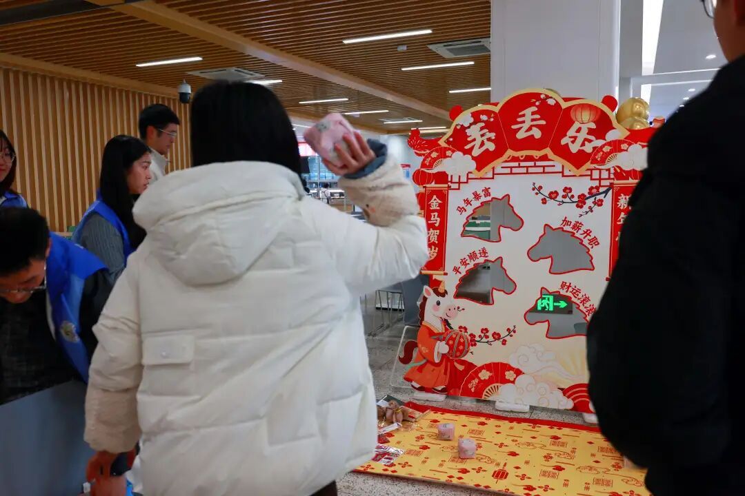 互动区欢声阵阵,传统民间游戏“丢丢乐”(投壶雅戏的趣味变体)吸引了众多尝试者。参与者凝神投掷,每一次命中都伴随着喝彩与掌声。游戏既考验技巧与心性,亦复刻了古代年节宴饮间的嬉戏场景,成为连接古今、融洽情感的欢乐纽带。