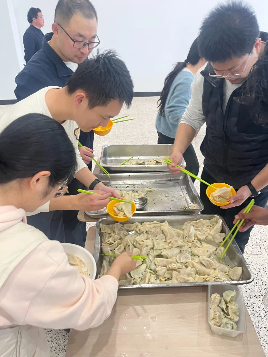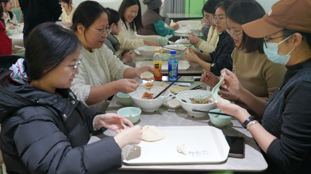 热气腾腾的饺子出锅后,师生共享劳动成果,畅叙情谊。本次活动不仅让同学们沉浸式体验了冬至传统习俗,更搭建了一个促进师生互动、深化跨文化交流的温馨平台。师生在协作中增进了解,在分享中感受关怀,充分展现了和谐共进、教学相长的导学关系,让传统文化在生动的校园生活中焕发新的活力。