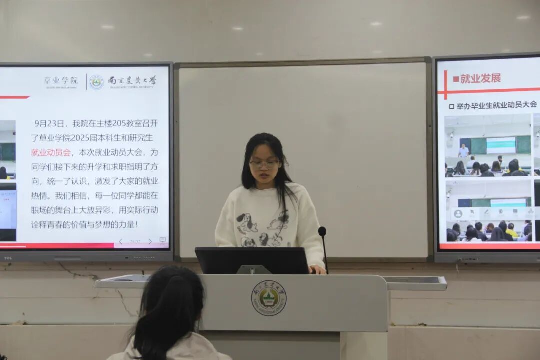 草业学院研分会系统汇报了近期工作开展情况与未来规划,并着重介绍了“神农学术大讲堂”、“钟山草业论坛”等品牌活动,展现出草业学院研分会丰富的工作成果与草业学子良好的精神风貌。