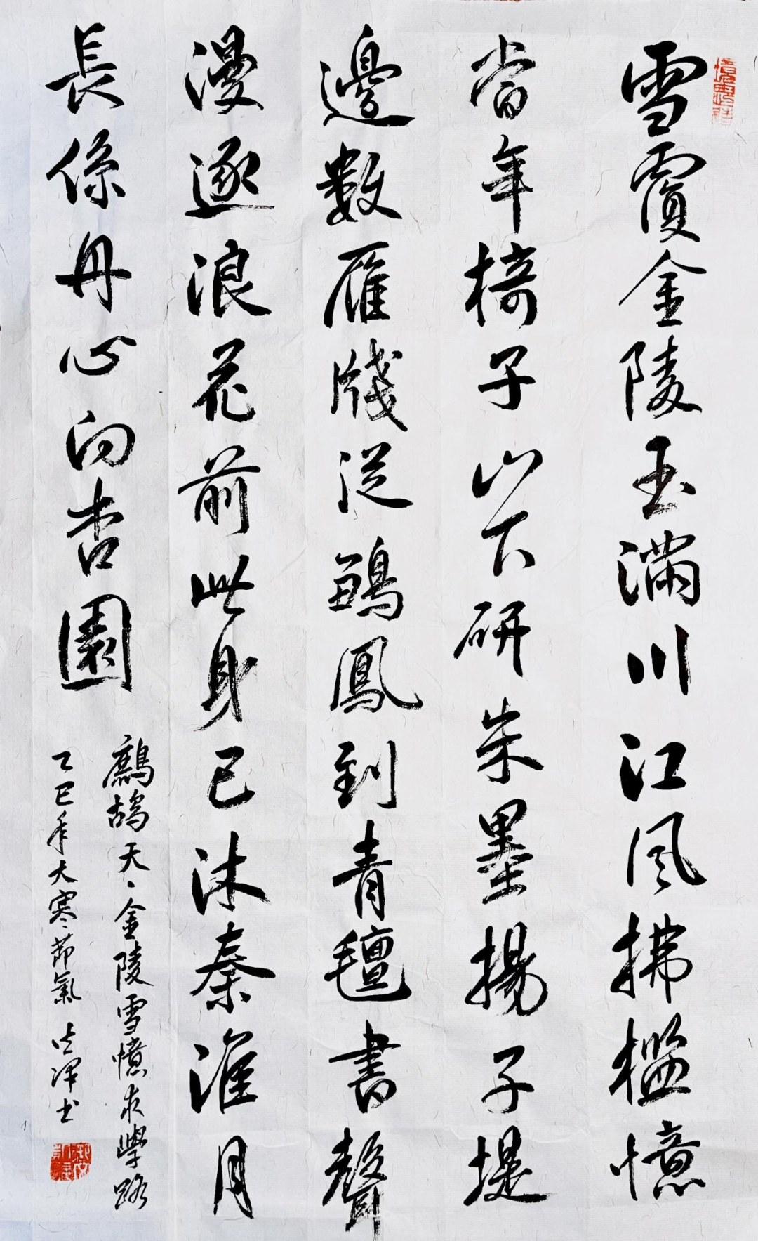 雪霁云开,素光满城。遥闻笑语,起于雪偶之嬉;忽觉襟怀,豁若冰释之崩。遂摄琼景,寄于椿庭。书曰:“金陵雪盛,可慰乡情。实验虽挫,已见微明。今译自然之码,当如雪花之贞——无序中有大序,柔婉内蕴刚棱。”