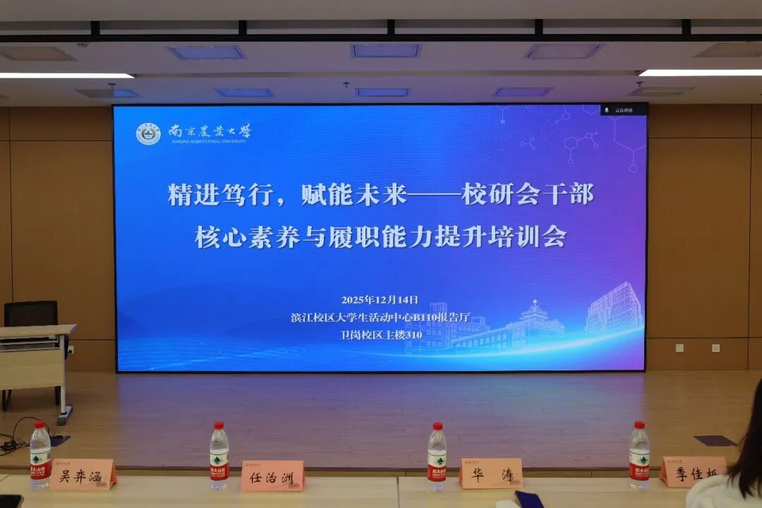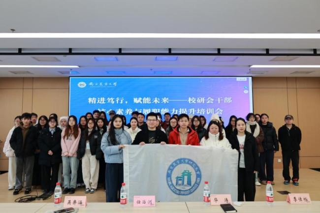 为进一步加强校研究生会干部队伍建设,提升研究生骨干的业务能力与团队协作水平,推动研究生会工作规范化、高效化开展,南京农业大学校研究生会于2025年12月14日成功举办“精进笃行,赋能未来”——校研会干部核心素养与履职能力提升培训会。本次会议围绕团队建设、材料撰写、AI技术应用和学生工作经验分享四大主题展开,校研究生会成员共同参与学习交流。