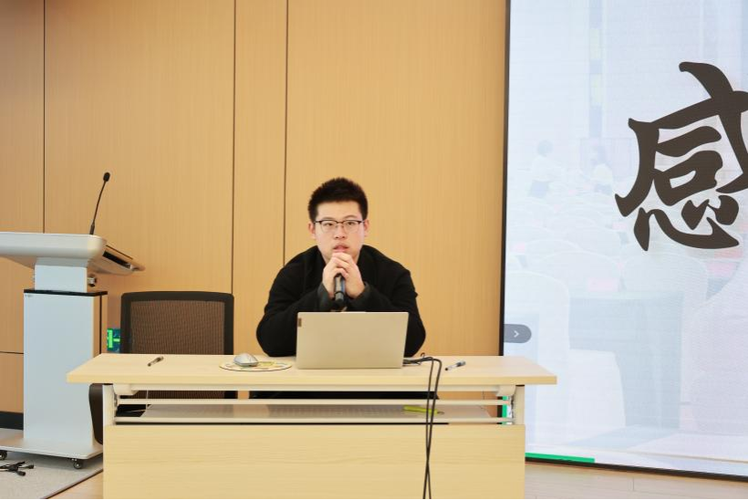 本次会议还邀请到第40届校研会执行主席任治洲进行经验分享。他结合自身经历,强调了复盘反思、批评与自我批评在个人与组织成长中的重要意义,并鼓励同学们在守正创新中不断积累、勇担使命。