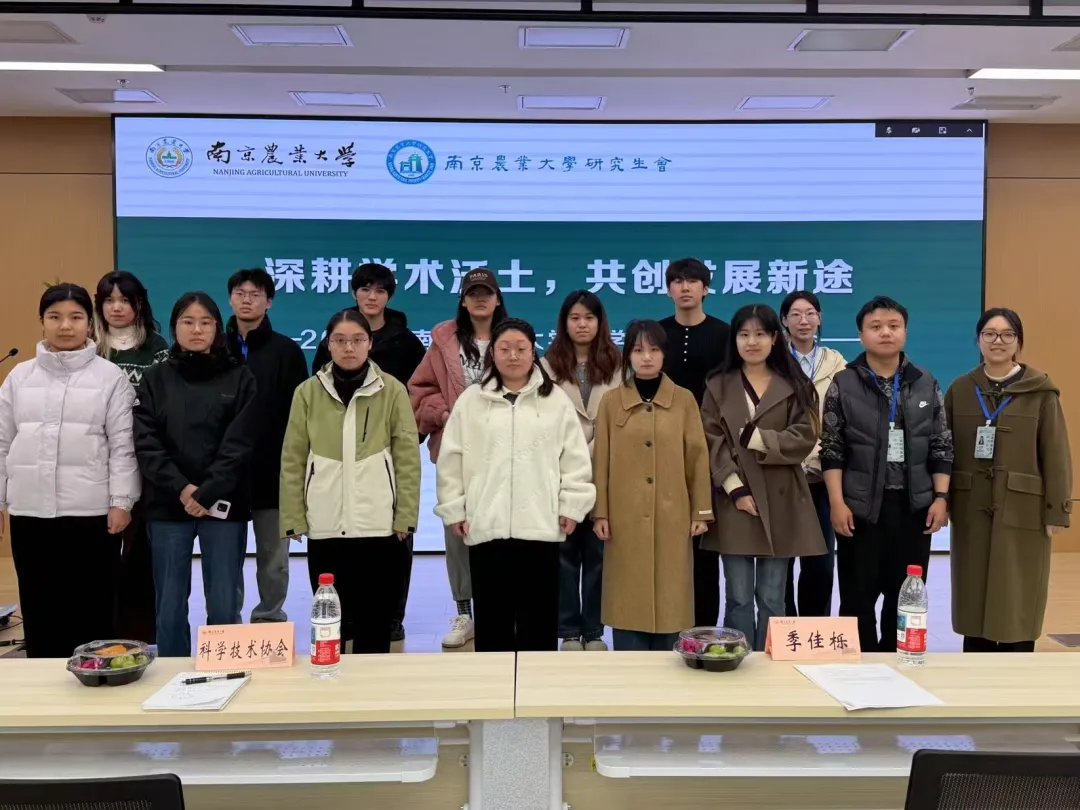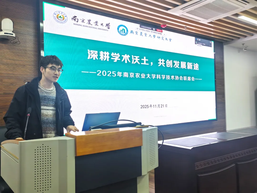 11月21日19:00,南京农业大学研究生会科学技术协会校院联席会议分别在卫岗校区第三实验楼706报告厅、滨江校区大学生活动中心B110会议室以及腾讯会议同步召开。本次会议以“深耕学术沃土,共创发展新途”为主题,旨在加强校院两级在学术、文化与创新实践竞赛等多方面的联动协作,充分展示我校学术生态的多样性、文化活力与创新实力。会议由南京农业大学研究生会主席团成员张卞豪主持,南京农业大学研究生会主席团成员季佳栎、科学技术协会全体成员以及农学院等23个学院的代表参加。