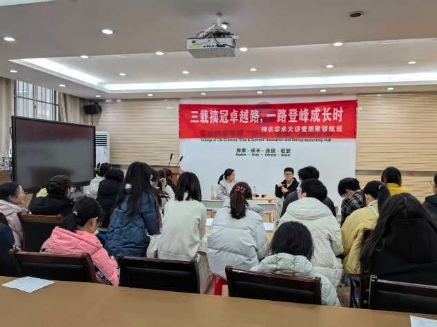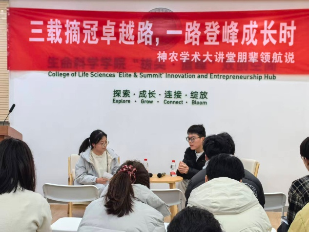 1月9日下午,“神农学术大讲堂——朋辈领航说”在卫岗校区生科楼B2004成功举办,本次活动以“三载摘冠卓越路,一路登峰成长时”为主题,邀请生命科学学院微生物学专业硕博连读研究生王子担任主讲嘉宾,围绕其在灵芝表观遗传调控与蛋白质翻译后修饰领域的研究展开深入交流。活动吸引南京农业大学40余位研究生积极参与,现场气氛热烈。