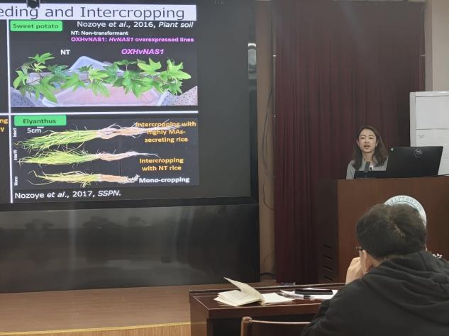 在报告环节,Tomoko Nozoye准教授以“Exploring Iron Uptake Strategies: Insights from TOM1 and High-Efficiency Wheat”为题,系统介绍了植物铁吸收机制的研究进展,重点解析了TOM1在高效铁吸收中的关键作用,探讨了铁营养调控在作物改良中的应用潜力。