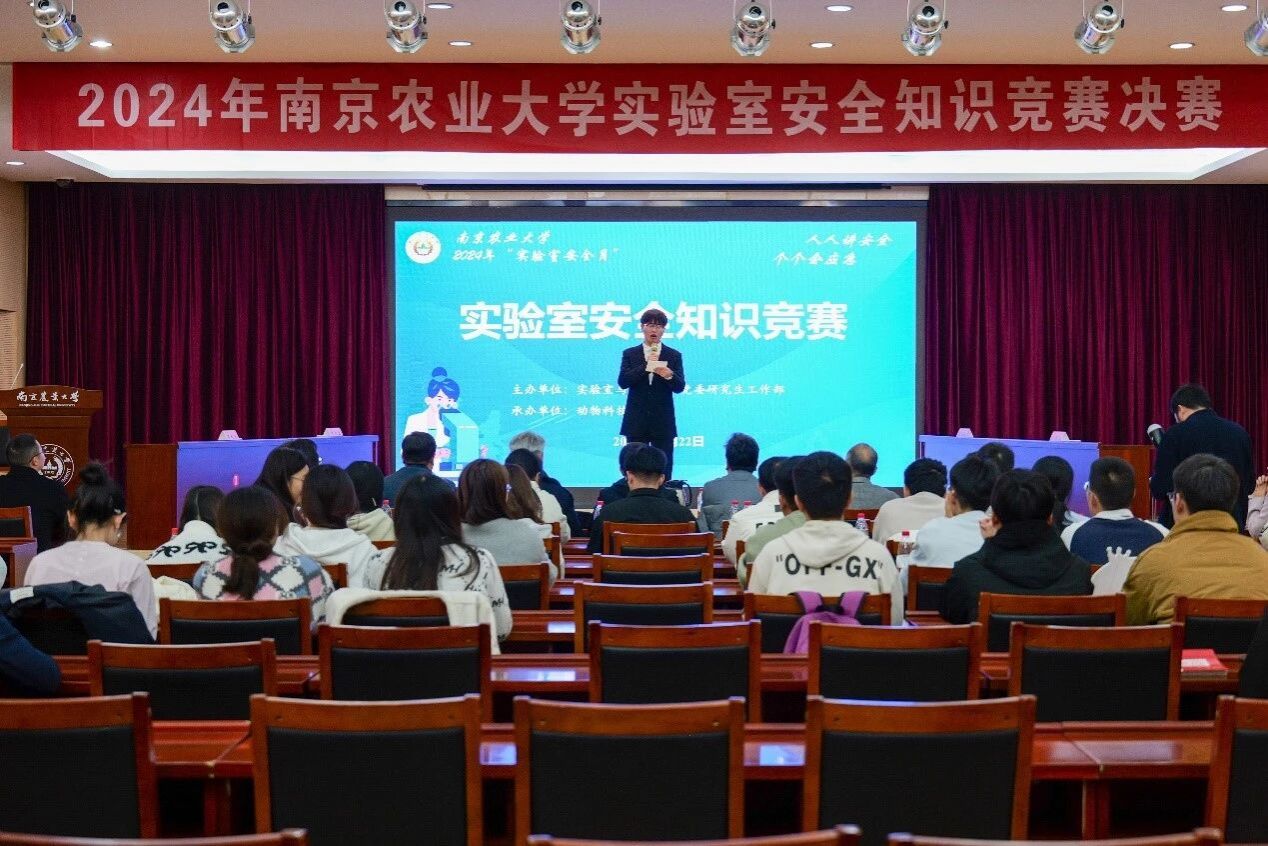 2024年11月22日下午,由南京农业大学实验室与基地处、党委研究生工作部联合主办,动物科技学院承办的“筑牢实验安全防线、共建平安和谐校园”实验室安全知识竞赛决赛在金陵研究院三楼成功举办。